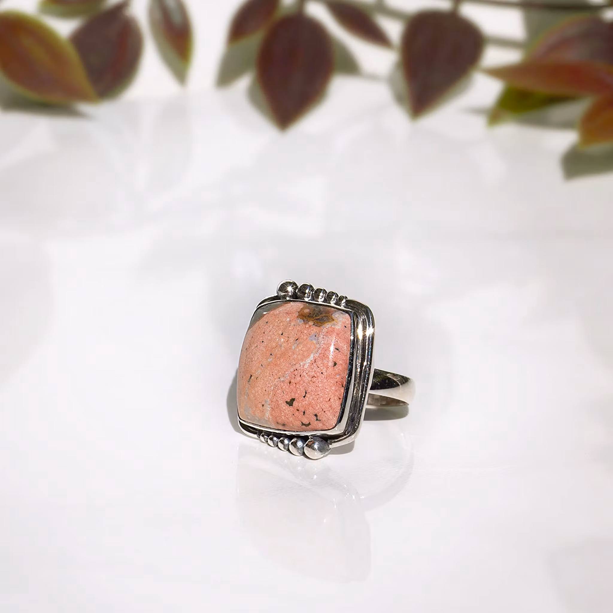 Ring I sterling silver (925) med ocean jasper. Storlek ring 17,2 mm (eu size 54), storlek sten ca 20x20mmOcean jasper sägs stärka vår inre kraft, hjälpa att kom