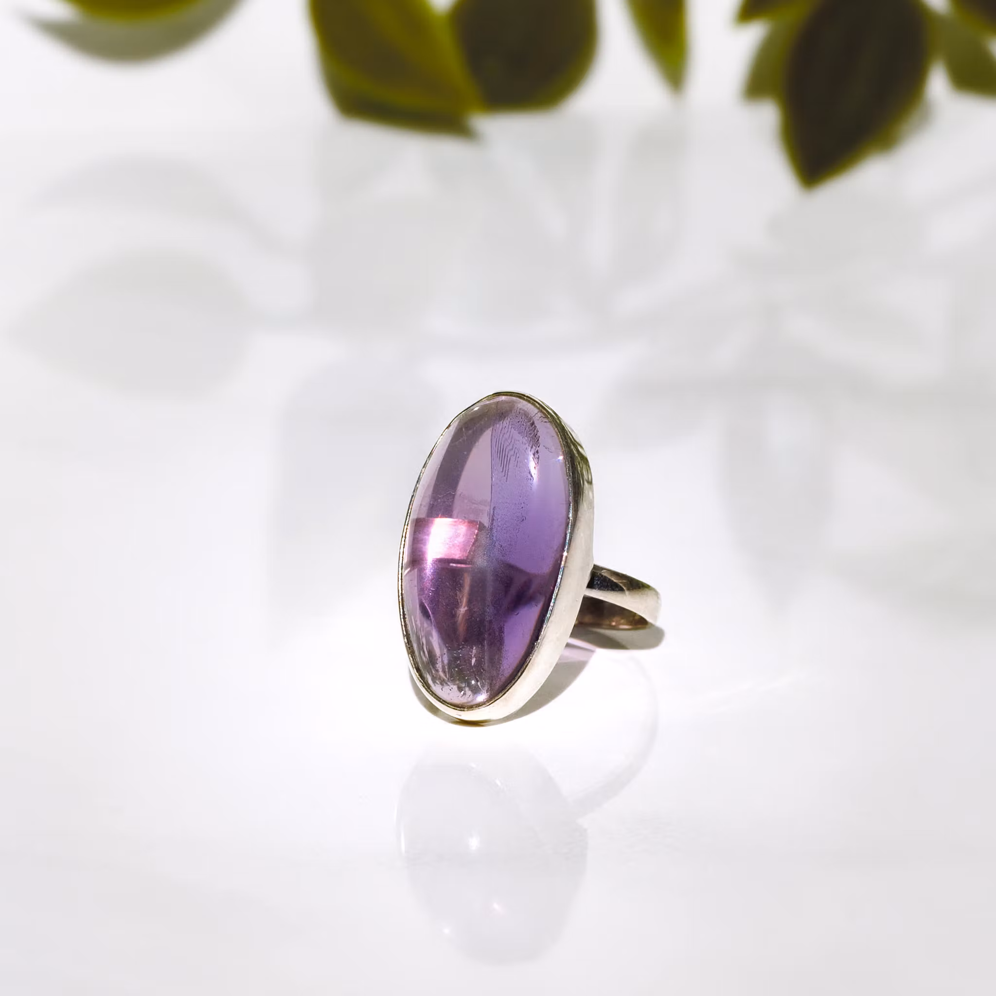 Ring i sterling silver (925) med ametist. Storlek ring 17,8 mm (eu size 56), storlek sten ca 13x24mmAmetisten sägs ha lugnande effekt och ge bättre sömn och drö