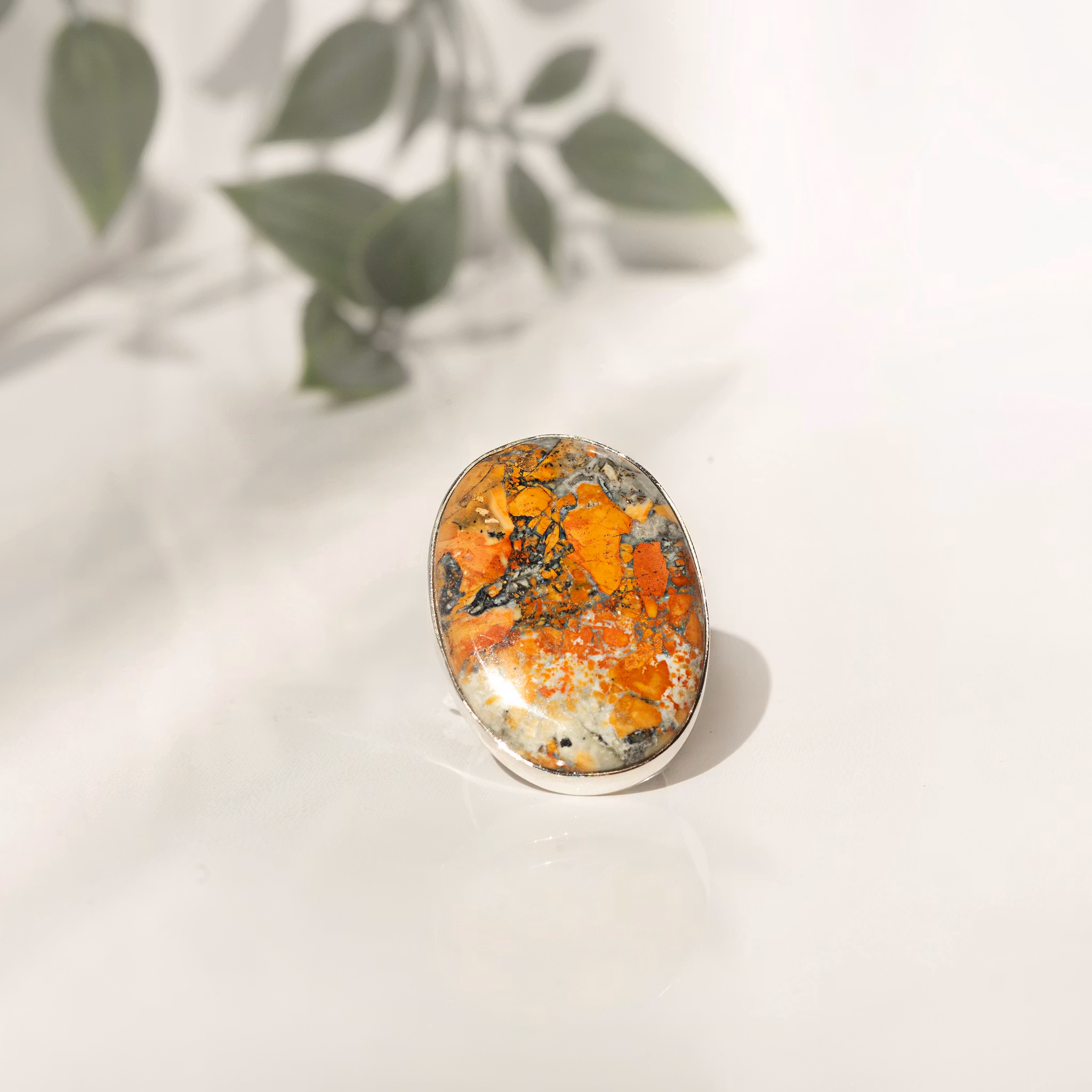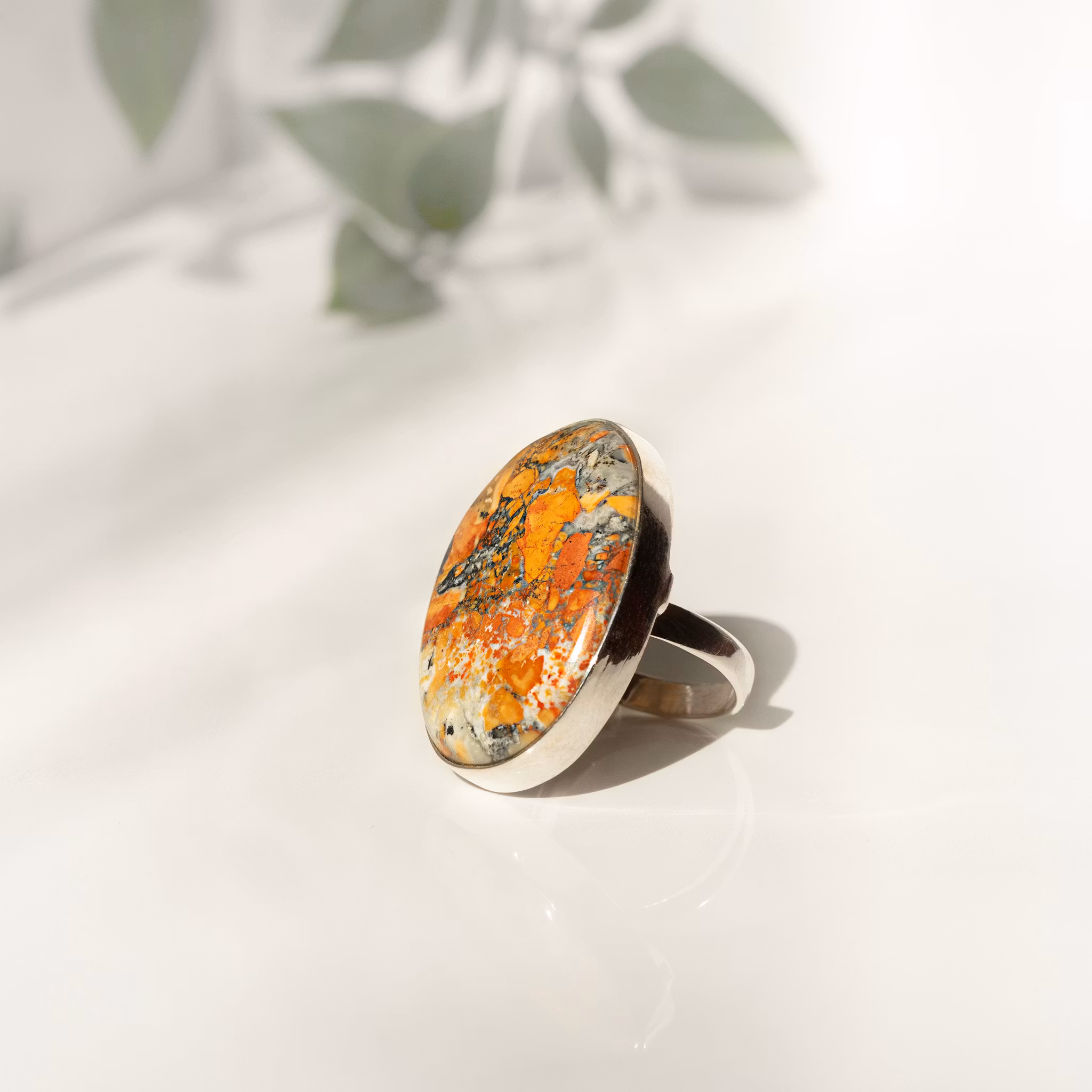 Ring I sterling silver med mailgano jasper. Storlek ring 17,8mm (eu size 56), storlek sten ca 24x33mmMaligano jaspis sägs skydda mot negativa energier och hjälp