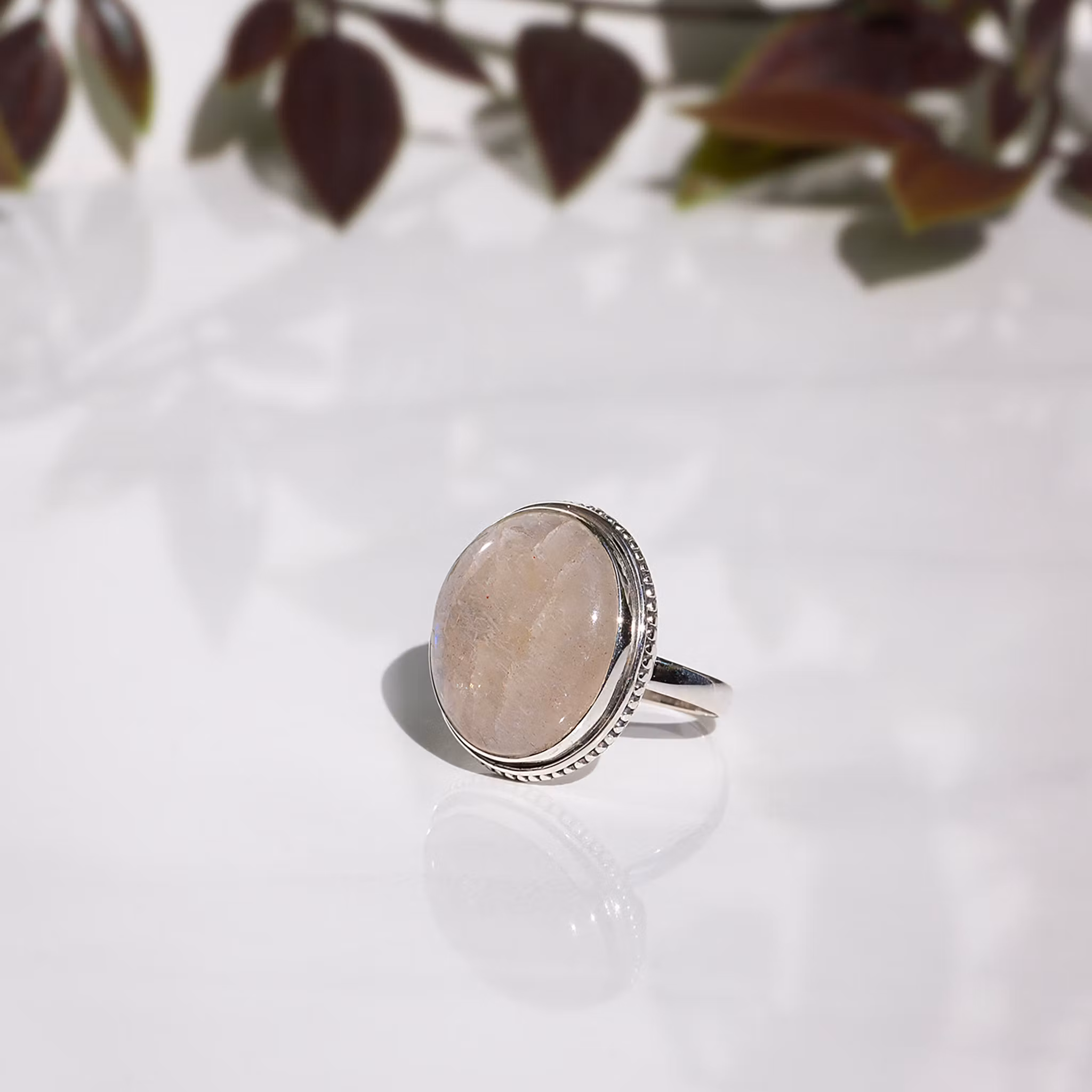 Ring i sterling silver (925) med månsten. Storlek ring 18,5 mm (eu size 58), storlek sten ca 19mmØ